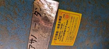 内容積:0.7㎥ 最高使用圧力:9.0kg/㎠ 水圧試験圧力95.0kg/㎠ 1991年製