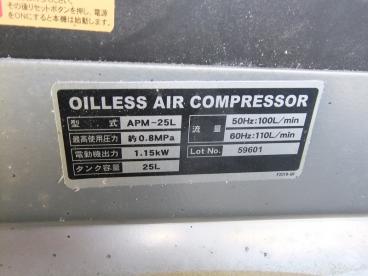 100V 1.15W 1.5馬力 エアタンク容量:25L 最高使用圧力約0.8MPa