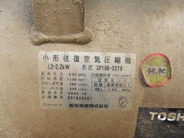 最高圧力:0.97Mpa 回転速度:1130min 吐出し空気量:265L/min ピストン押しのけ量:370L/min 2.2Kw 4P