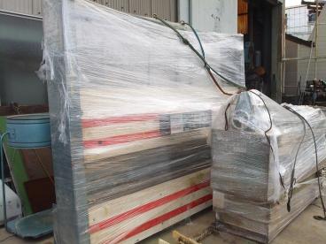 ホットライン 8尺 有効加工幅:2400mm 加工厚:1220mm 最大圧力:8トン 使用モータ:0.75Kw 面材厚さ:MAx15mm 面材幅:Max45mm